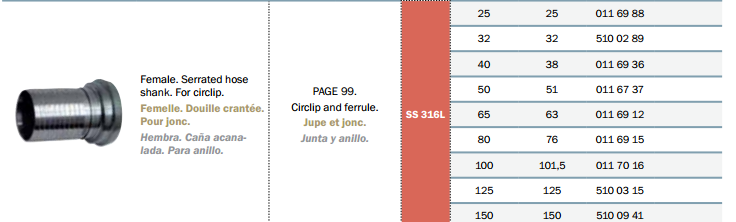 法式接頭 Guillemin EN11420-8/NF E 29572