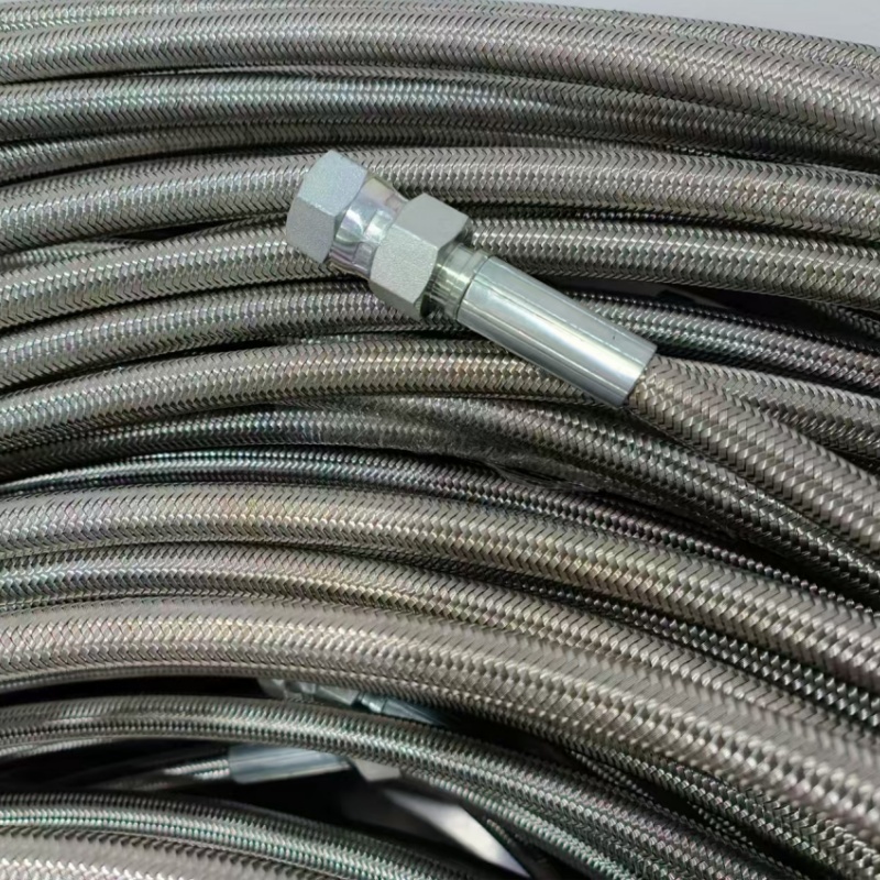 增強層:不銹鋼絲網或其他高強度材料,防止軟管膨脹變形,顯著提升抗壓能力(耐壓范圍一般為1000-3000 psi,即6.9-20.7 MPa)。